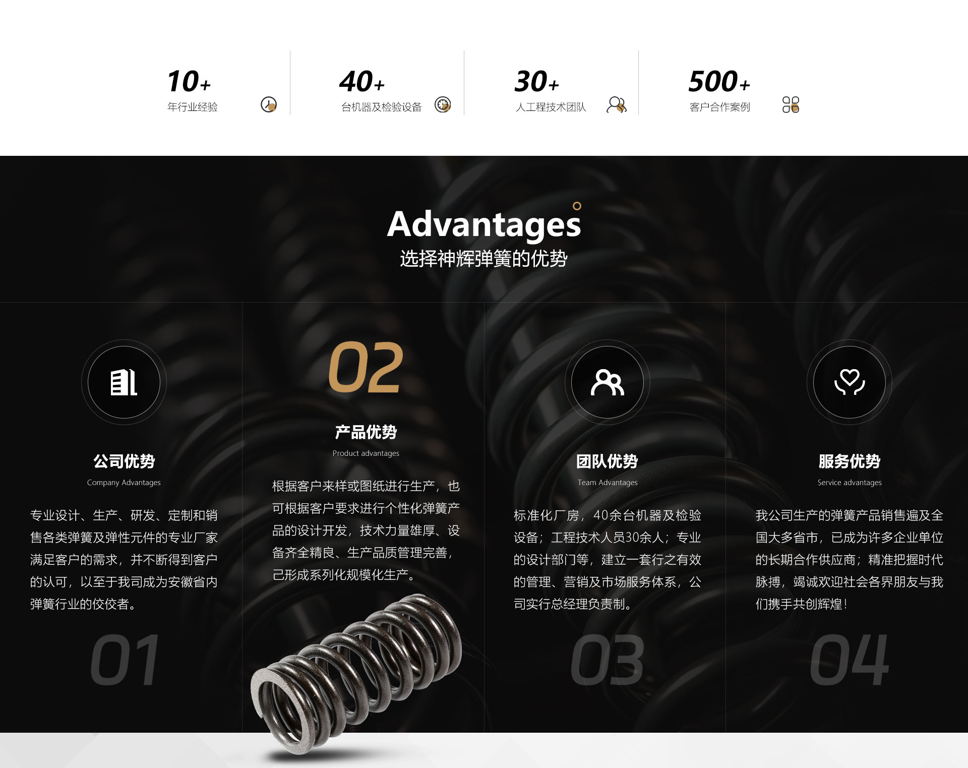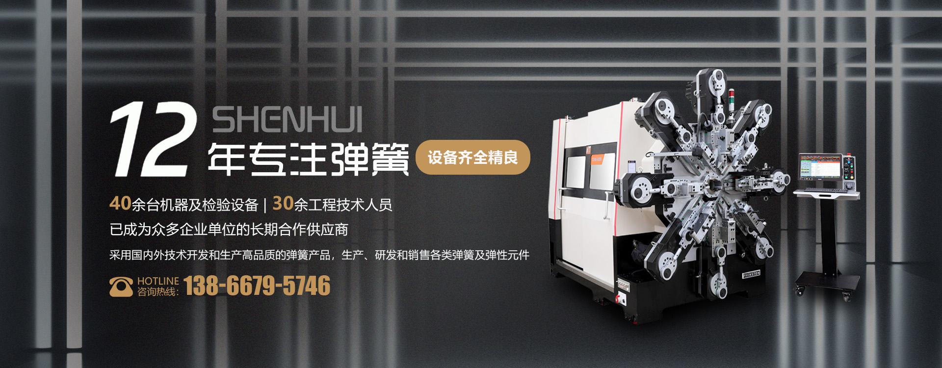 關(guān)于我們合肥神輝彈簧有限公司位于合肥市長(zhǎng)豐雙鳳經(jīng)濟(jì)開(kāi)發(fā)區(qū)雙墩路中南高科產(chǎn)業(yè)園43棟B座,我司專(zhuān)業(yè)生產(chǎn)、研發(fā)和銷(xiāo)售各類(lèi)彈簧(壓簧、拉簧、扭簧、碟簧),以“質(zhì)量?jī)?yōu)先,誠(chéng)信為本,客戶(hù)至上”為經(jīng)營(yíng)理念。公司擁有先進(jìn)的精密電腦數(shù)控彈簧成型機(jī)、磨簧機(jī)、以及檢驗(yàn)設(shè)備等。公司技術(shù)力量雄厚,有一支高素質(zhì)、會(huì)管理、懂業(yè)務(wù)的管理人才和熟練的技術(shù)人員隊(duì)伍。公司可根據(jù)用戶(hù)的要求,設(shè)計(jì)生產(chǎn)各類(lèi)型彈簧。我們將以“先進(jìn)的技術(shù)、優(yōu)良的品質(zhì)、合理的價(jià)格、周到的服務(wù)”滿(mǎn)足客戶(hù)的需求。